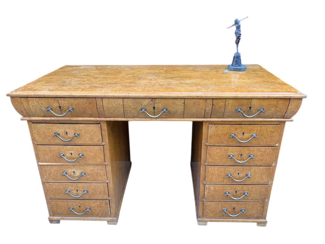 Antica scrivania in radica di acero Biedermeier inizi XX secolo